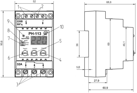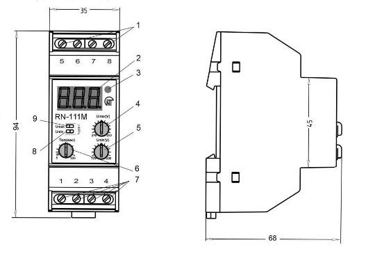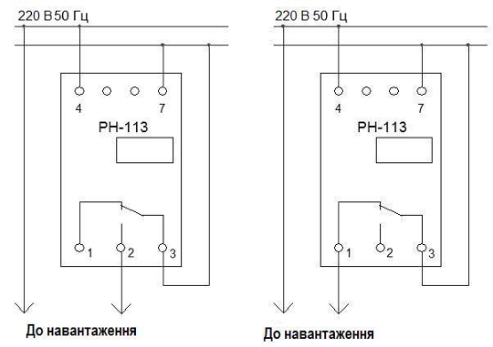 - РН-113 індукує діюче значення вхідної напруги і стан вихідного реле.