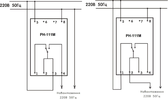 Реле напруги РН-111M призначені для відключення побутових і промислових пристроїв 1-фазної навантаження будь-якої потужності при неприпустимих коливаннях напруги в мережі з подальшим автомати-ленням включенням після відновлення параметрів мережі: • при потужності навантаження до 3,5 кВт (до 16 А ) відключення проводиться безпосередньо вихідними контактами реле, включеними в розрив живлення навантаження; • при потужності, що перевищує 3,5 кВт (16 А) відключення здійснюється магнітним пускачем (МП) відповід-ної потужності, розрив живлення котушки якого включені вихідні контакти реле.