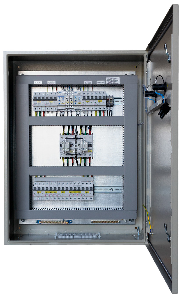 В зависимости от поставленной задачи, схема управления может быть реализована на отдельной модульной аппаратуре либо на контроллере. Стоит отметить, что мощность потребителей определяет вид исполнения щитов АВР, которые в связи с этим собираются в оболочках навесного или напольного исполнения. Учитывая необходимое проектное решение щит АВР может содержать также и приборы учета.