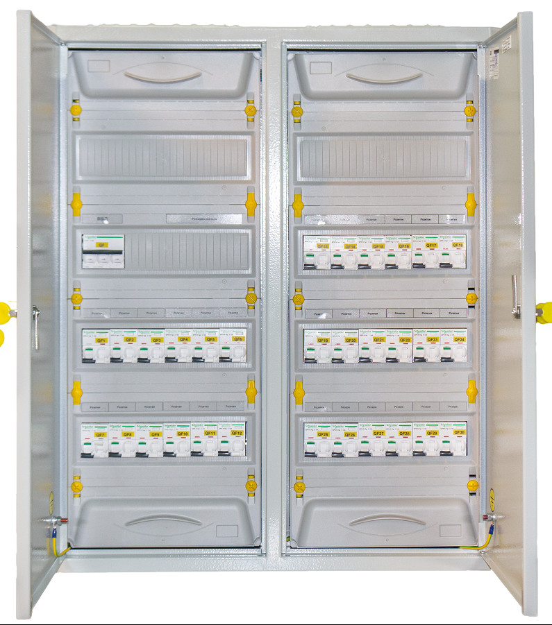 Содержит в своем составе защитно-коммутационную аппаратуру: автоматические выключатели, дифференциальные автоматы, УЗО, реле контроля напряжения.