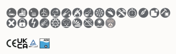 - Стійкий до атмосферних впливів та ультрафіолетового випромінювання згідно з EN 50618, а також до озону згідно з EN 50396;
