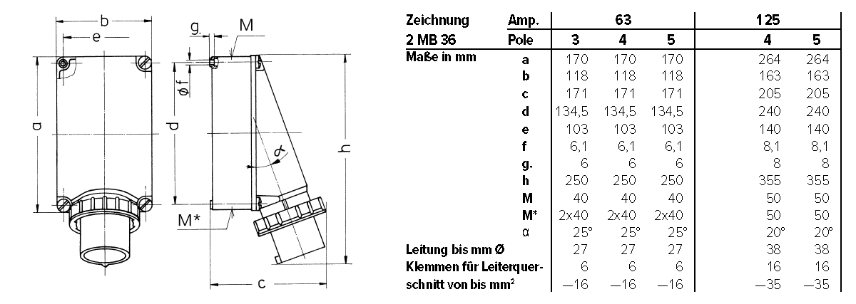 Купити Силовий роз'єм 125A5P 6H400V настінний штекер IP67 Меннекес
