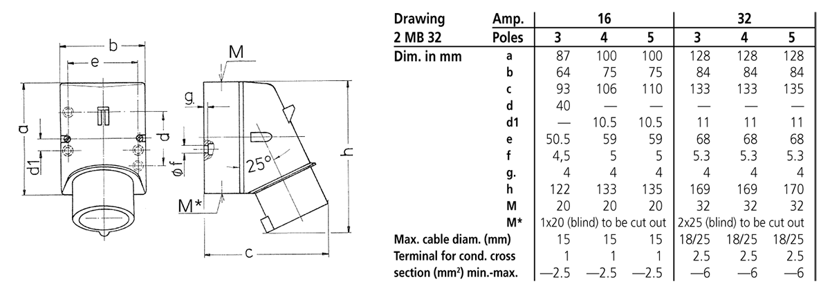 Вхід настінний 16 A3 Pin 332 IP 44 332!