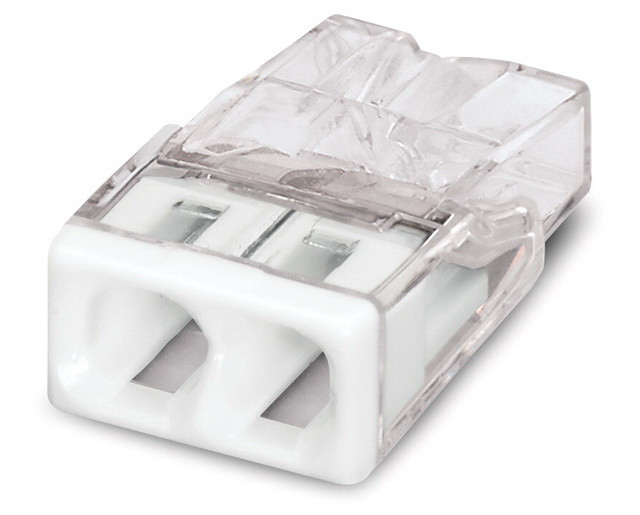 Монтажная клемма на 2 провода. Возможность сочетания одножильных проводников различного сечения в одной клемме от 0,5 до 2,5 мм2. Номинальное напряжение: 450 В. Номинальный ток: 24 А. Необходимая длина зачистки изоляции: 11 мм. Температура окружающей среды: до 60°С. . Класс воспламеняемости по UL 94 - V2. Пожарная нагрузка - 0.014 MJ. Вес - 0.713 г.