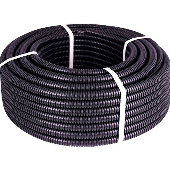 Труба гибкая гофрированная ПВХ 16/12мм_бухта 100м 750Н с протяжкой черная УФ-устойчивая (на улицу) METAKSAN 750H16100