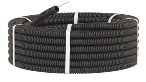 Труба ПВХ гибкая гофрированная УФ-стойка, д.с.25 / 18,3 мм с протяжкой черный цвет 100м. ДКС