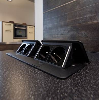 Чёрная электрофурнитура - стильное решение для офисных помещений. Выдвижные розеточные блоки черного цвета от компании Legrand удачно вписываются в эту концепцию. Чтобы изящно включить лючки Legrand в общий интерьер, нужно подобрать к ним розетки черного цвета.