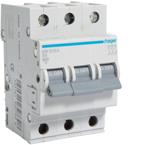 Мінімальна кіль-ть для замовлення "Автоматичний вимикач 16А 3 плюса Х-ка В, 6 kA, 3м Hager" = 1.
