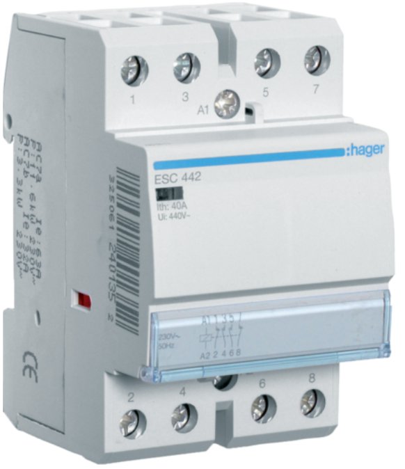 Контактор 40A 4 полюси 2НО+2НЗ [Uc] 230В [Ue] 400 V AC 3-модульний Hager ESC442
