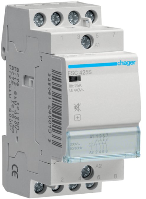 Контактор безшумний 25A 4 полюси 4НО [Uc] 230В [Ue] 400 V AC 2-модульний Hager ESC425S