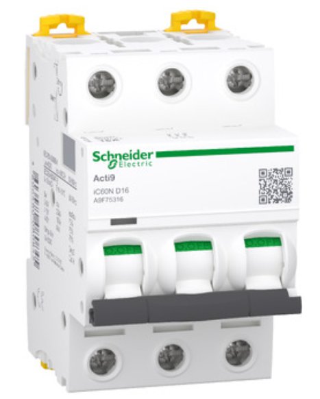Автоматичний вимикач 3-полюсний 3P 16A "D" iC60N Schneider Electric A9F75316