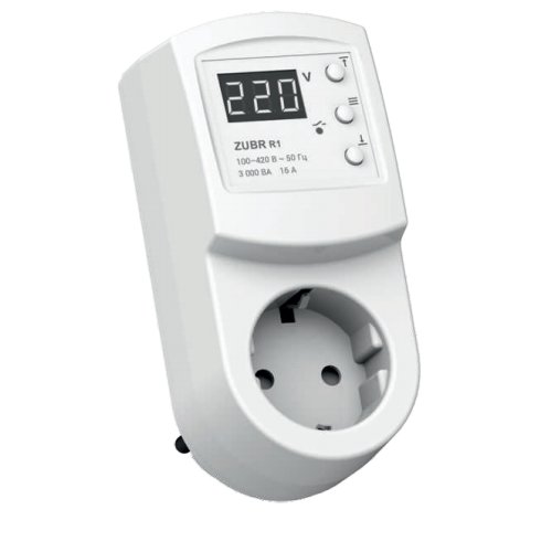 Реле напруги ZUBR R1 призначене для захисту обладнання від надмірних коливань напруги. Особливістю даної моделі є її встановлення у "євро" розетку. Реле вимикає навантаження при перевищенні допустимих меж напруги (максимальних та мінімальних).