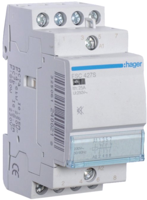 Контактор бесшумный 25A 4 полюса 2НО+2НЗ [Uc] 230В [Ue] 400 V AC 2-модульный Hager ESC427S