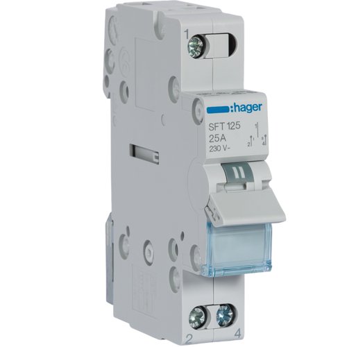 Переключатель-рубильник I-0-II выход сверху 1-полюс 40А/230В 1-модуль HAGER SFT140