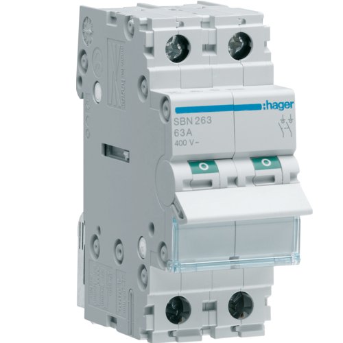 Выключатель нагрузки 2-полюсный 63А/400В 2-модуля HAGER SBN263