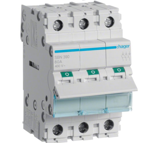 Выключатель нагрузки 3-полюсный 100А/400В 3-модуля HAGER SBN390