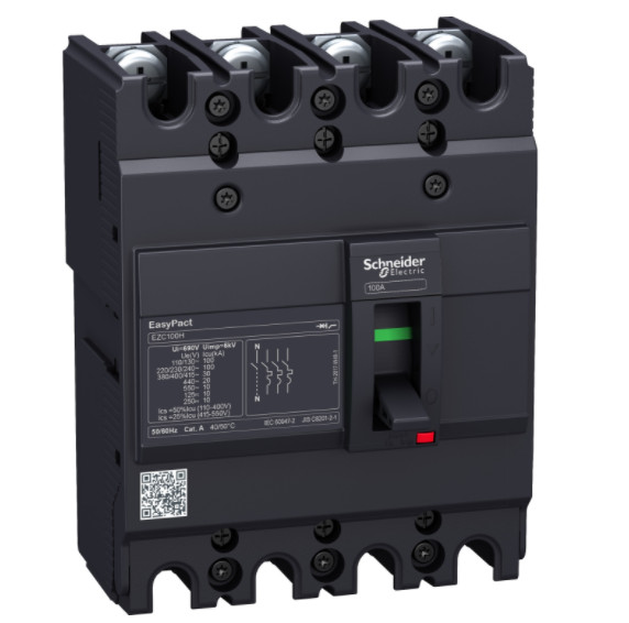 EasyPact 15kA 400V 4Р/3T 100А Автоматический выключатель в литом корпусе Schneider EZC100N4100 EZC100N4100