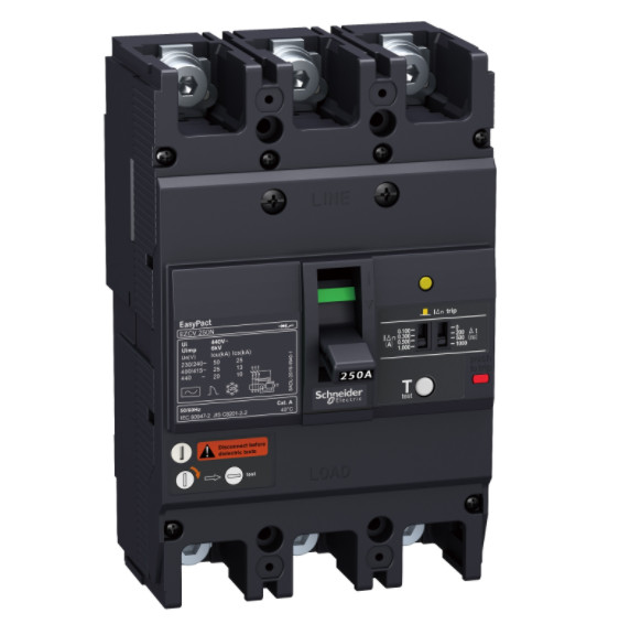 EasyPact 25кА 3P3T 63А c УЗО Автоматический выключатель в литом корпусе Schneider EZCV250N3063 EZCV250N3063