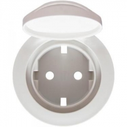 Лицьова панель розетки з заземлюючим контактом і захисною кришкою білого кольору. Матеріал накладки - высококачественый ABS-пластик, захищений від механічного пошкодження, загоряння і негативного впливу УФ випромінювання. Монтаж на механізм. Ступінь пиловологозахисту розетки з даної накладкою підвищується до IP44.