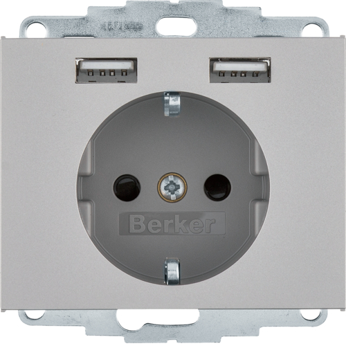 Розетка з з/к 16А/250В + 2хUSB/2.4A нерж.сталь-лак K.5 48037004
