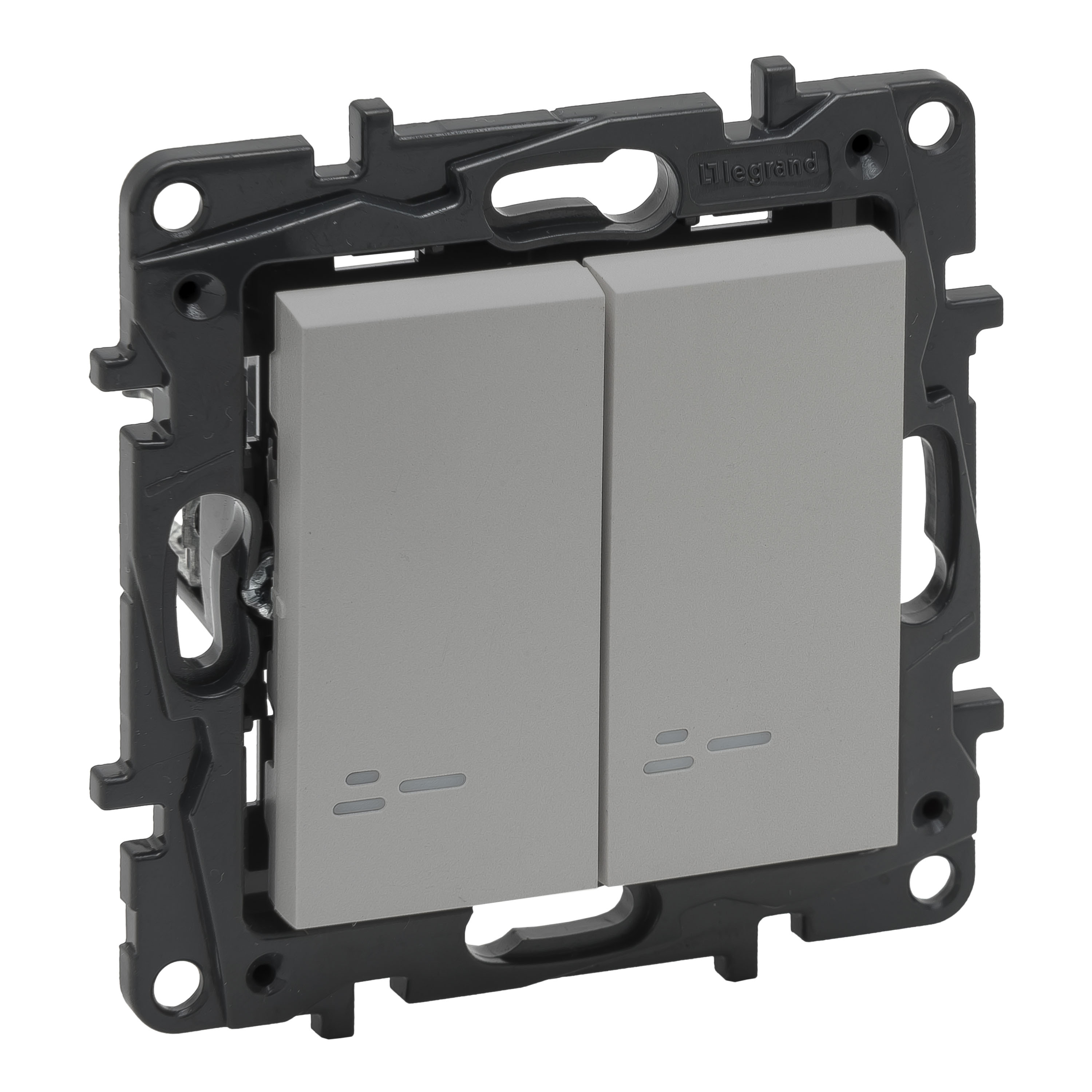 Мінімальна кіль-ть для замовлення "NILOE STEP Перемикач двоклавішний з підсвіткою 10А автоматичні клеми, колір Алюміній" = 5.