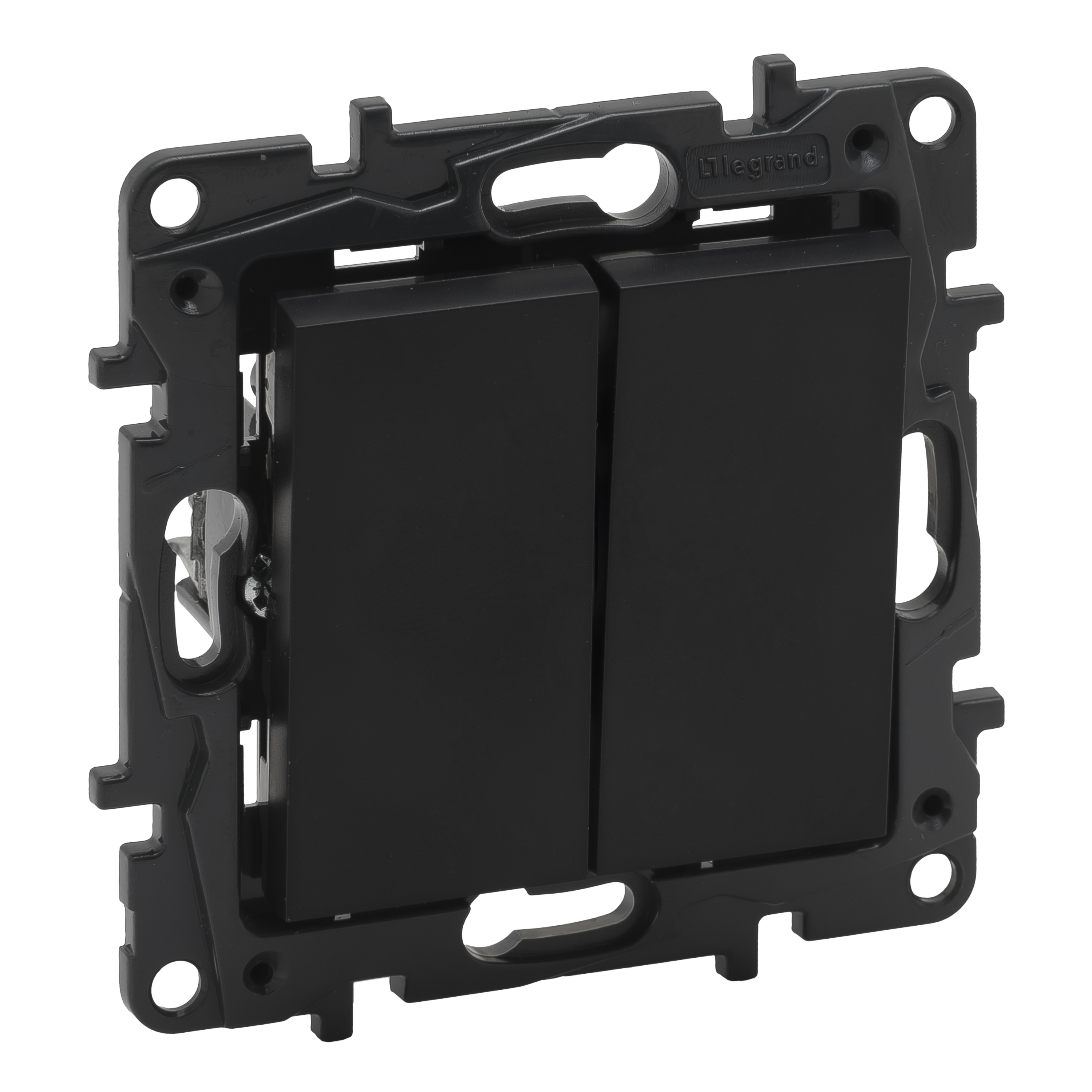 Мінімальна кіль-ть для замовлення "NILOE STEP Вимикач двоклавішний 10А автоматичні клеми, колір Чорний" = 1.