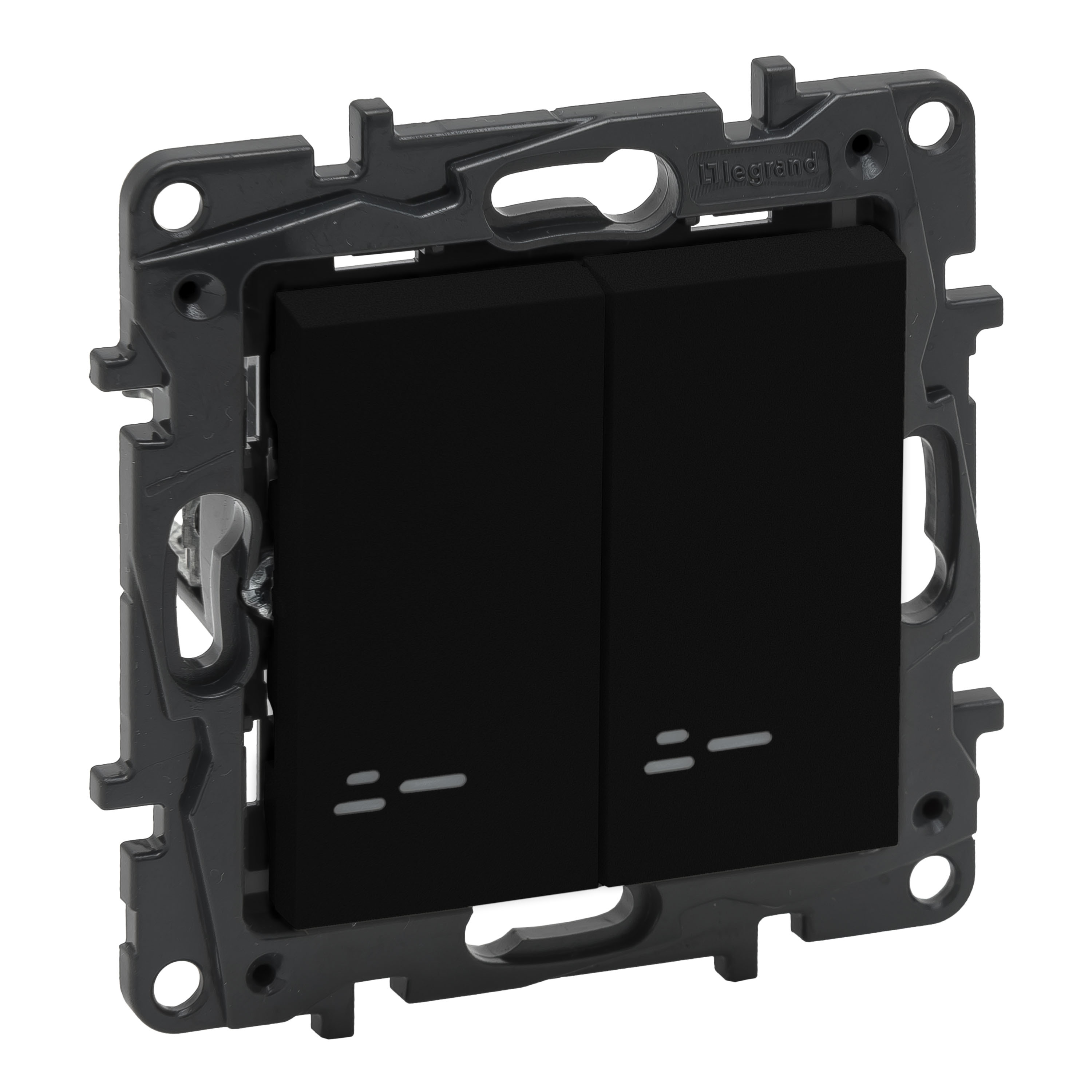 NILOE STEP Вимикач двоклавішний з підсвіткою 10А автоматичні клеми, колір Чорний