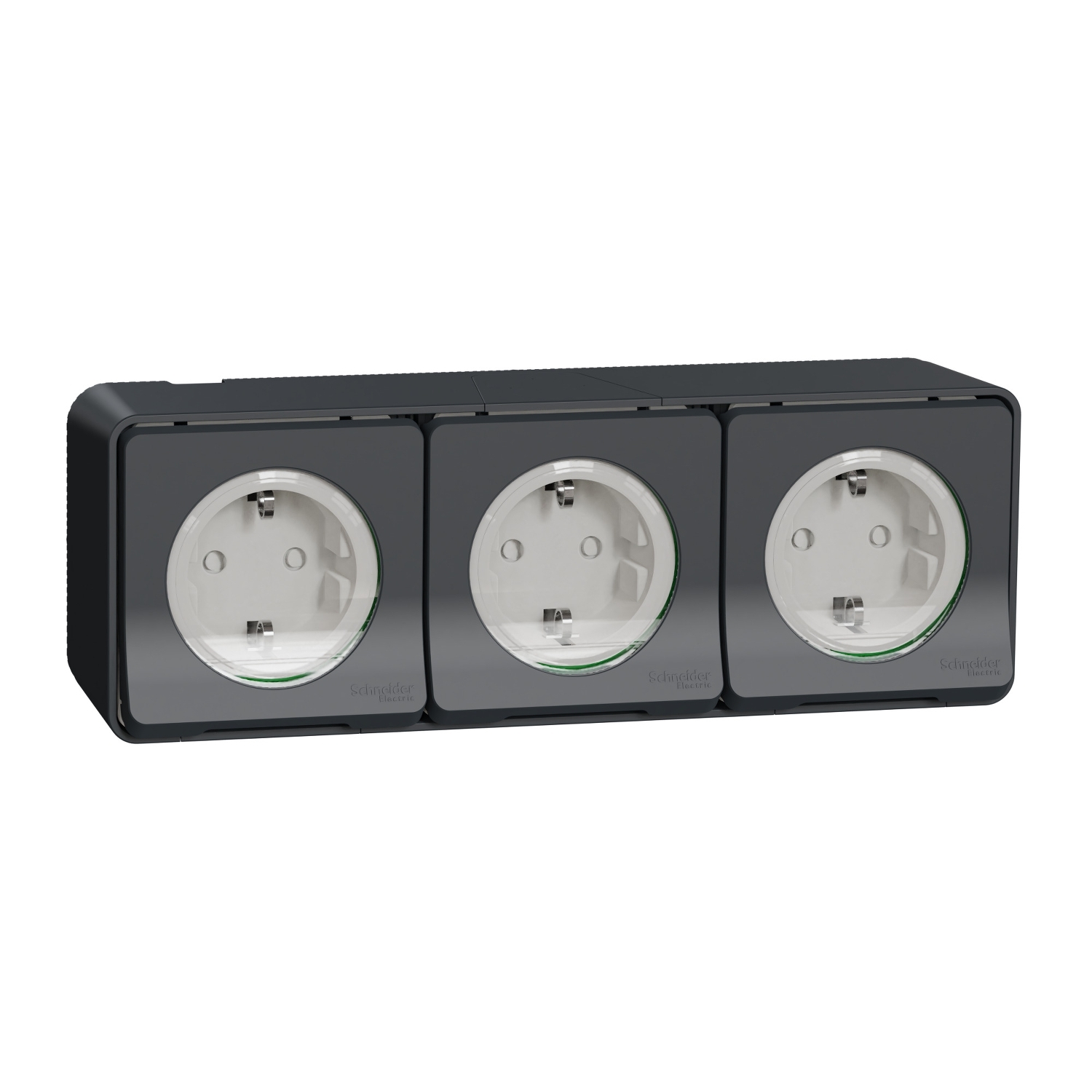 Блок з трьох розеток з заземленням та шторками IP55, чорний, для поверхневого монтажу Mureva Styl Schneider Electric MUR36038