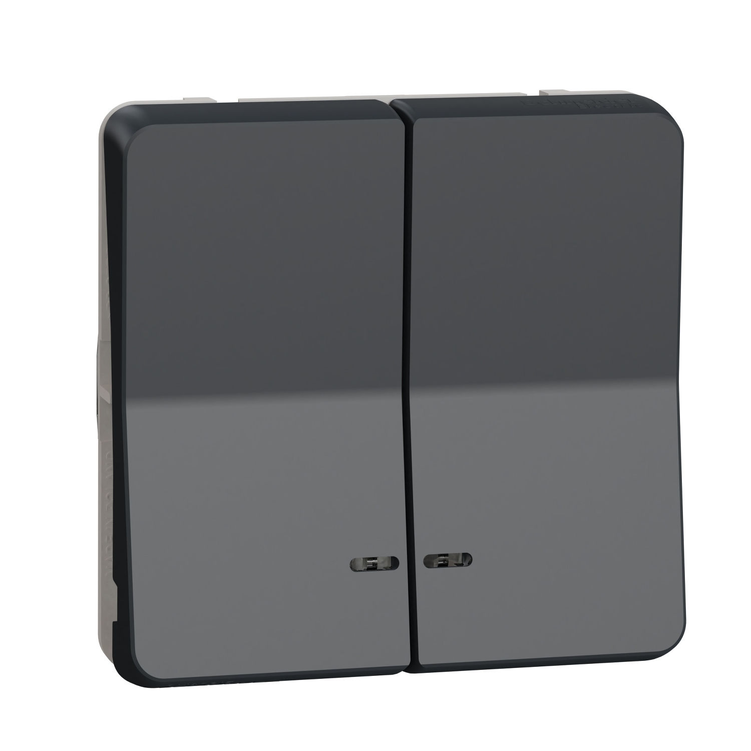 Механізм двоклавішного кнопкового вимикача з підсвіткою IP55, чорний, Mureva Styl Schneider Electric MUR35228