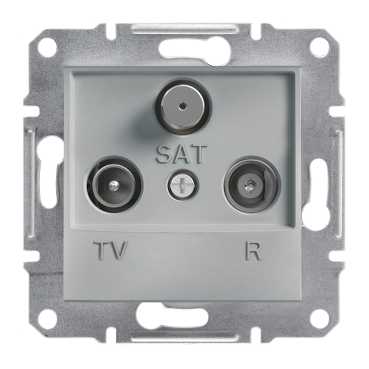 Телевізійна розетка з кількома коннекторами TV-R-SAT кінцевого типу. використовується як замикаючий елемент у ланцюгу з прохідними розетками того ж типу. Впливає на загасання сигналу на рівні 8 дБ. Виготовляється з якісного матеріалу (АБС пластик) з даростойкими характеристиками і захистом від ультрафіолету. Прихований Монтаж, в монтажну коробку.