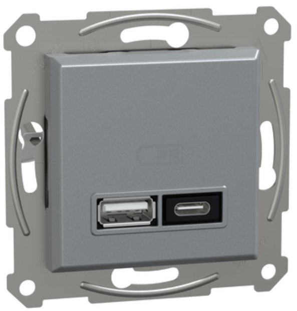 Подвійний зарядний пристрій USB тип A+C 21 Вт із супортом Сталь Asfora Schneider Electric EPH2700562 EPH2700562