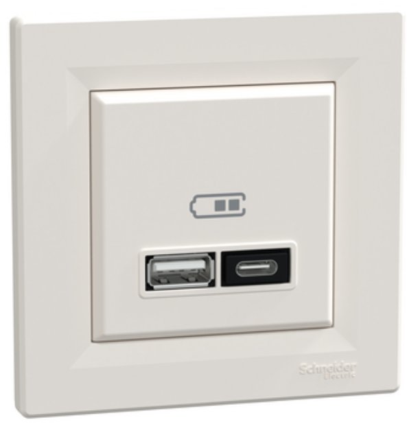Подвійний зарядний пристрій USB тип A+C 21 Вт в комплекті Кремовий Asfora Schneider Electric EPH2700523