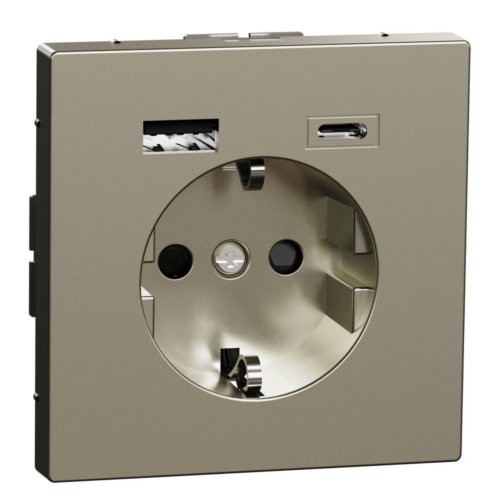 Розетка с з/к 16А + USB type A+C 3.0A, авт. клеммы, D-Life (никель) MTN2367-6050