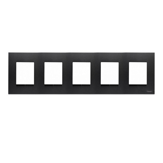 Рамка на 5 постів кольору антрацит серії Zenit. Виконана з інноваційного екологічного композиту найвищої якості, що відзначено сертифікатом AENOR Ecodiseño. Призначена для монтажу на сталевий супорт вироби або кріплення до універсальної коробці з допомогою гвинтів або фіксаторів. Монтаж як горизонтально, так і вертикально. Порожні місця можна закрити заглушками.