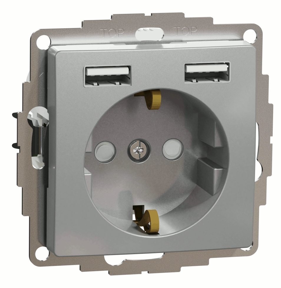 Розетка з з/к 16А, шт. та 2хUSB 2.4A, Sedna Design (алюміній)