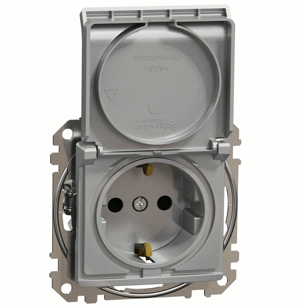 Розетка з з/к 16A, шт. та кришкою, Sedna Design (алюміній)