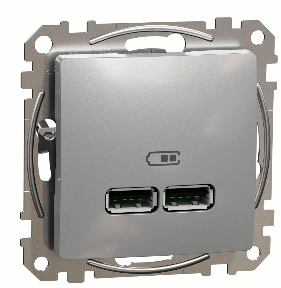 Зарядка подвійна USB type A, 2.1А/2*1.05А, Sedna Design (алюміній) SDD113401