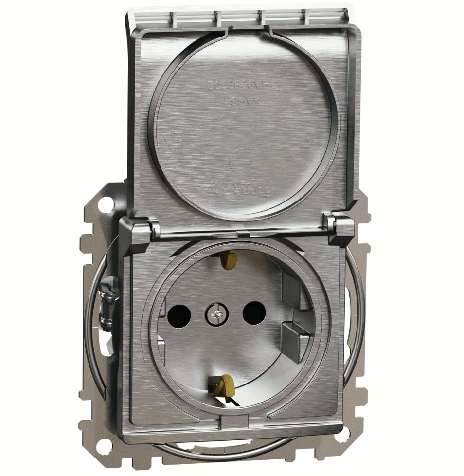Розетка з з/к 16A, шт. та кришкою, Sedna Elements (матовий алюміній) SDD170024