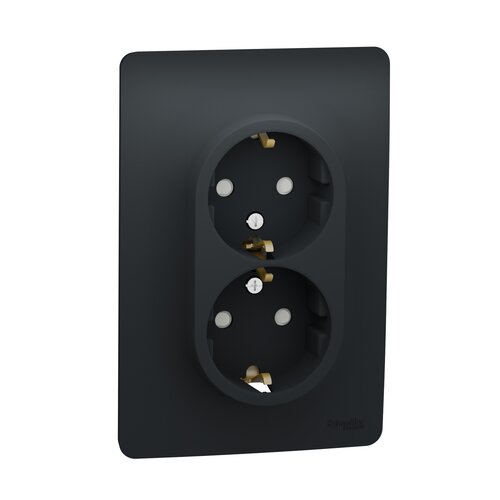 Розетка Подвійна с з/к з захисними шторками гвинтовий зажим антрацит Unica New