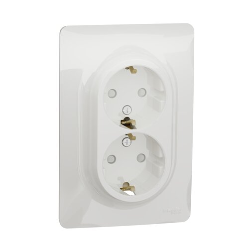 Розетка Подвійна с з/к з захисними шторками гвинтовий зажим білий Unica New NU206718