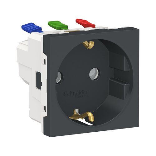Розетка с з/к з захисними шторками 16А з самозажимними клемами антрацит Unica New