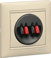Розетка для включення аудіо сигналу розрахована на дві групи контактів (4 виходи). Використовується для включення аудіосистеми за засобом прихованої в стіні проводки. Обладнана коннекторами стандарту DIN 41 529. Для провідників перетином 0,75 - 5 мм2. Панель виконана з високоякісного полікарбонату, стійкого до механічних пошкоджень і займання. Супорт, захоплення, гвинти - оцинкована сталь. Установка в монтажну коробку.