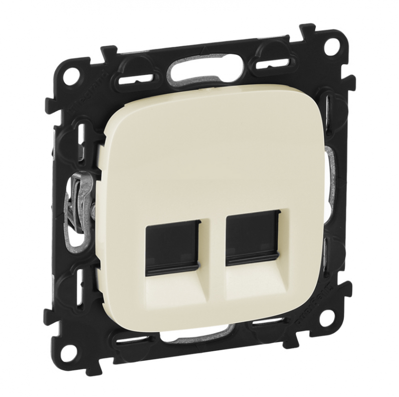 Лицьова панель для подвійних розеток телефонних/ комп'ютерних кольору слонова кістка. Матеріал накладки - ABS - пластик, стійкий до займання і механічних пошкоджень,також захищений від негативного впливу УФ - променів, що гарантує довгий термін служби. Установка замиканням на супорт. Підходить для механізмів артикулів: