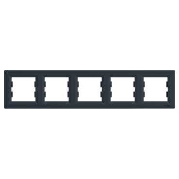 Декоративная рамка для соединения в группу до 5-ти элементов серии Асфора, рамка имеет цвет антрацит. Монтаж горизонтальный. Материал - не поддерживающий горения АБС-пластик, стойкий к царапинам. Поверхность устойчива к воздействию ультрафиолета. Пустые места можно закрыть заглушками.