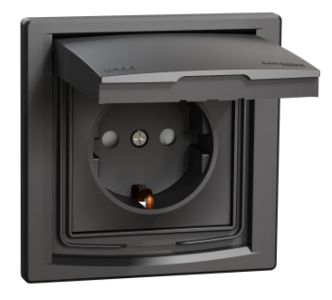 Розетка с з/к защитными шторками и крышкой IP44 антрацит Asfora