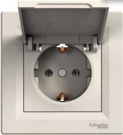 Бытовая розетка с з/к, шторками и крышкой кремовая IP44 Asfora