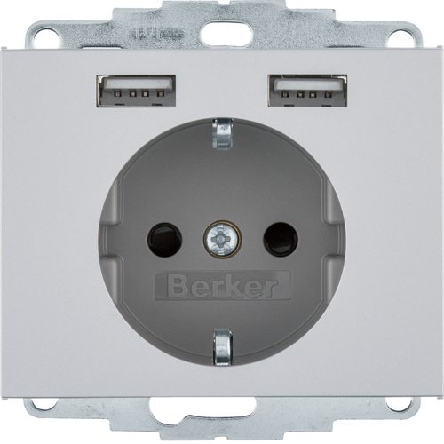 Розетка с з/к 16А/250В + 2хUSB/2.4A алюминий-лак K.5 48037003