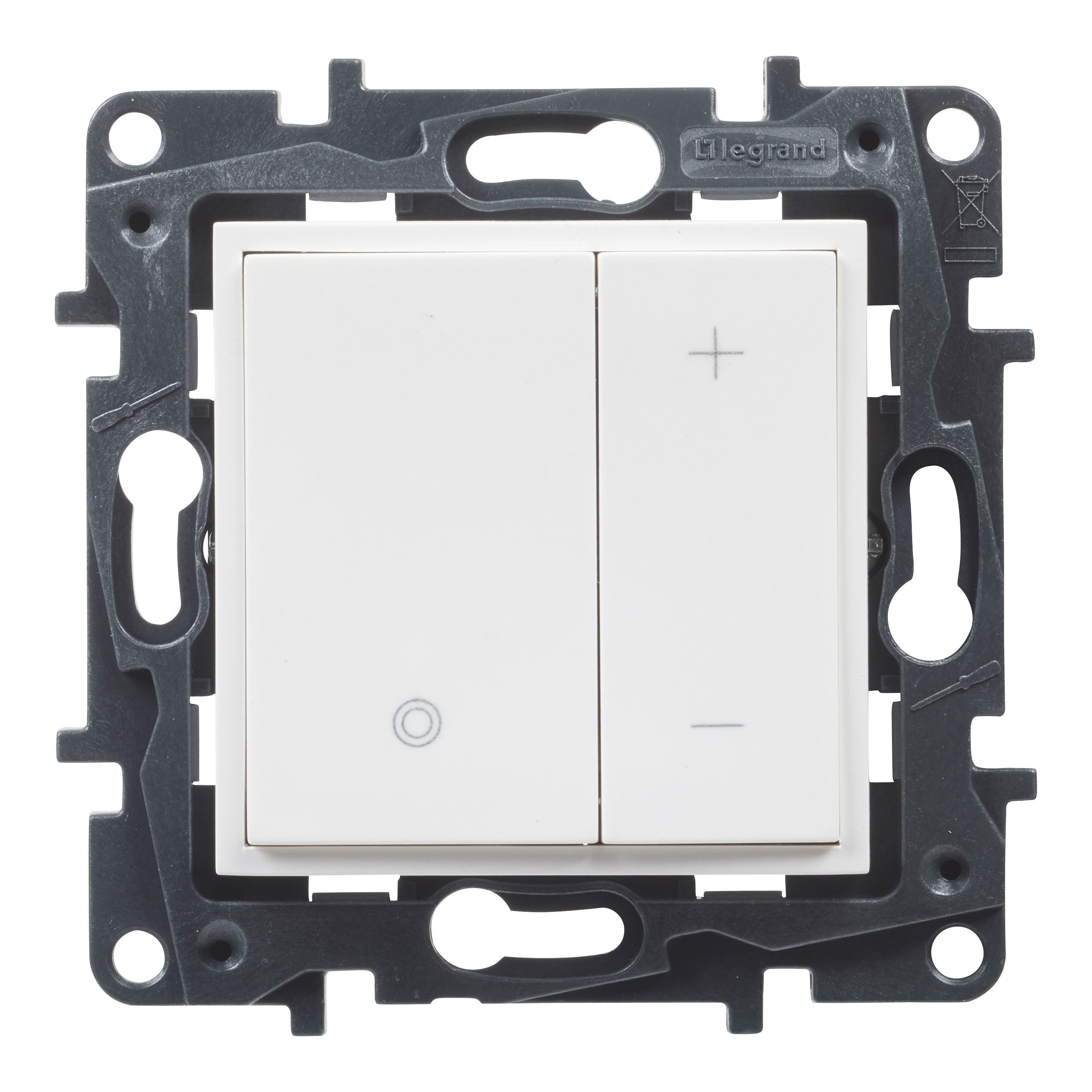 Для всех типов ламп: регулируемые светодиоды: от 5 Вт до 75 Вт (макс. 10 ламп), регулируемые компактные люминесцентные лампы: от 5 Вт до 75 Вт (максимум 10 ламп), галогенные с ферромагнитным или электронным трансформатором: от 3 ВА до 400 ВА, люминесцентная трубка - балласт: от 3 ВА до 200 ВА, галогенные и накаливания 240 ВА: от 3 Вт до 400 Вт. | Оснащен защитой от перенапряжения и короткого замыкания. | Может устанавливаться в качестве замены традиционного выключателя. | Винтовые клеммы| Механизм с монтажными лапками облегчит монтаж при ремонте.