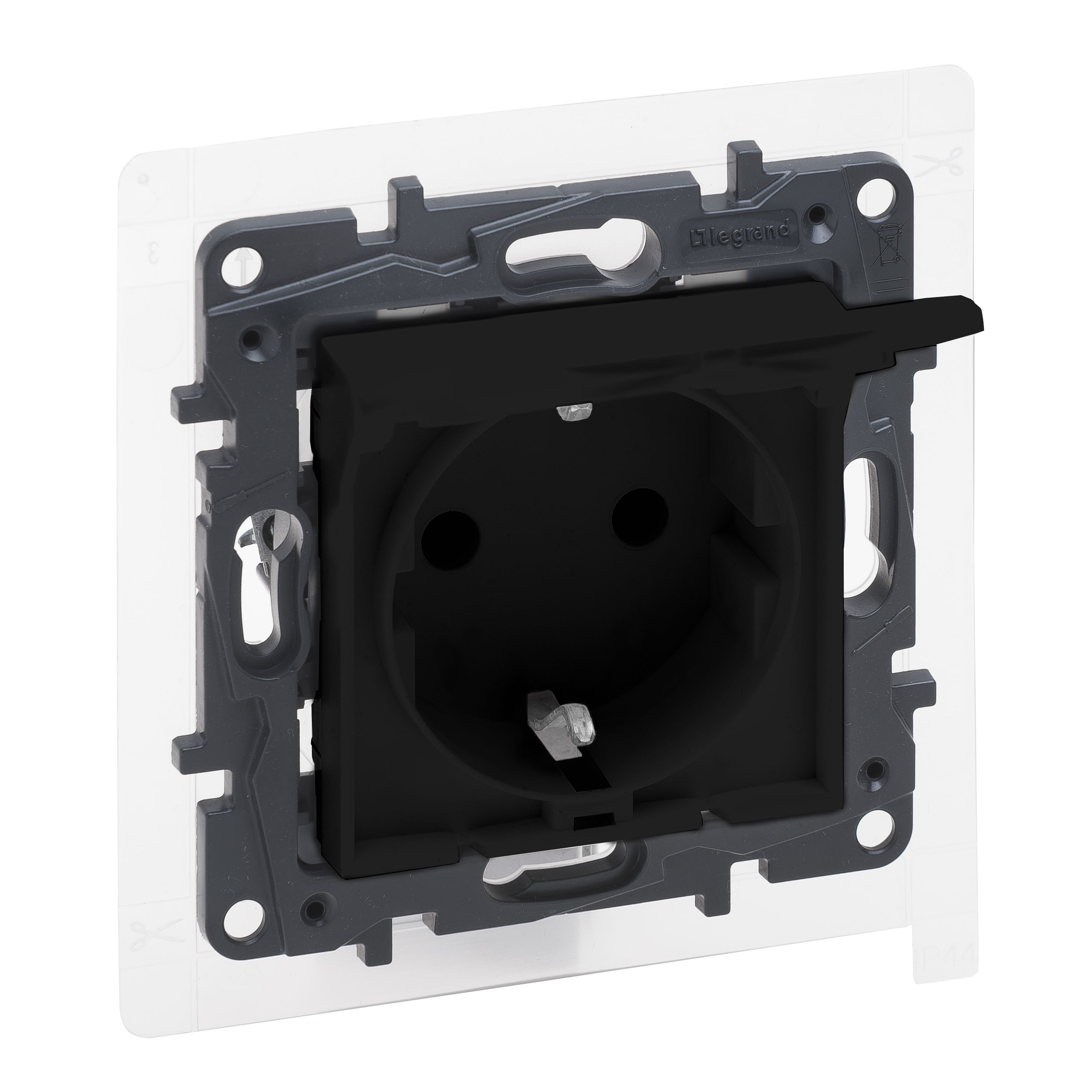 Миним. кол-во для заказа "NILOE STEP Розетка силовая с крышкой 2К+З IP44 16А, 250 В автоматические клеммы, Цвет Черный" = 5.