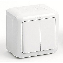 Двухклавишный выключатель 10А IP44 белый Legrand Forix (Quteo)